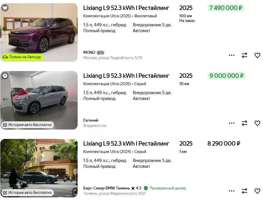 热门的车型则更加离谱,当初 40 多万人民币的理想 L9,在俄罗斯可是能卖到 1100 万卢布(折合人民币 90