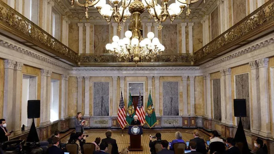 2023年于美国财政部现金大厅举行的一场会议。 [Getty Images]
