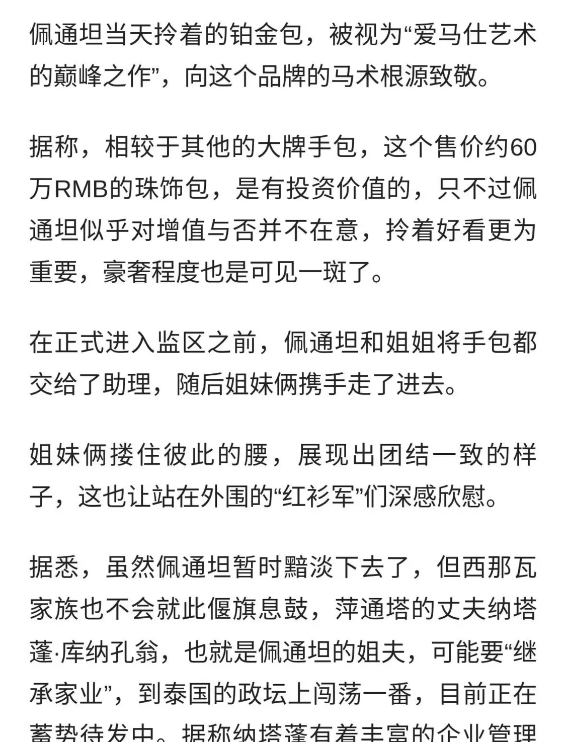 泰国美女前总理久违探监,拎60万爱马仕很贵妇