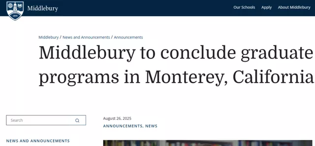 ▲ 蒙特雷宣布关停研究生项目。图 / 网络