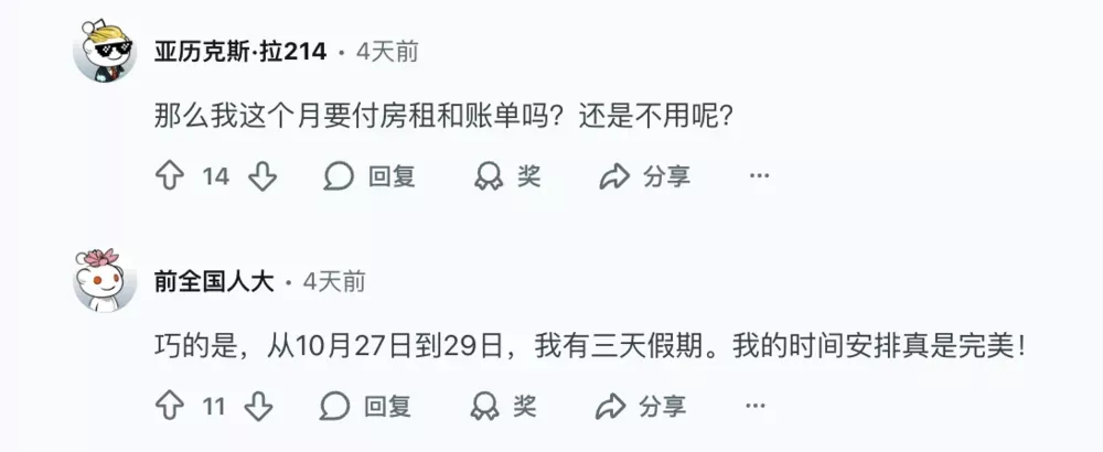 在Reddit的aliens的板块,氛围像即将过年一样快活。有人安排好了自己的假期,还有的已经在认真考虑这个月的房租和账单还要不要付了。