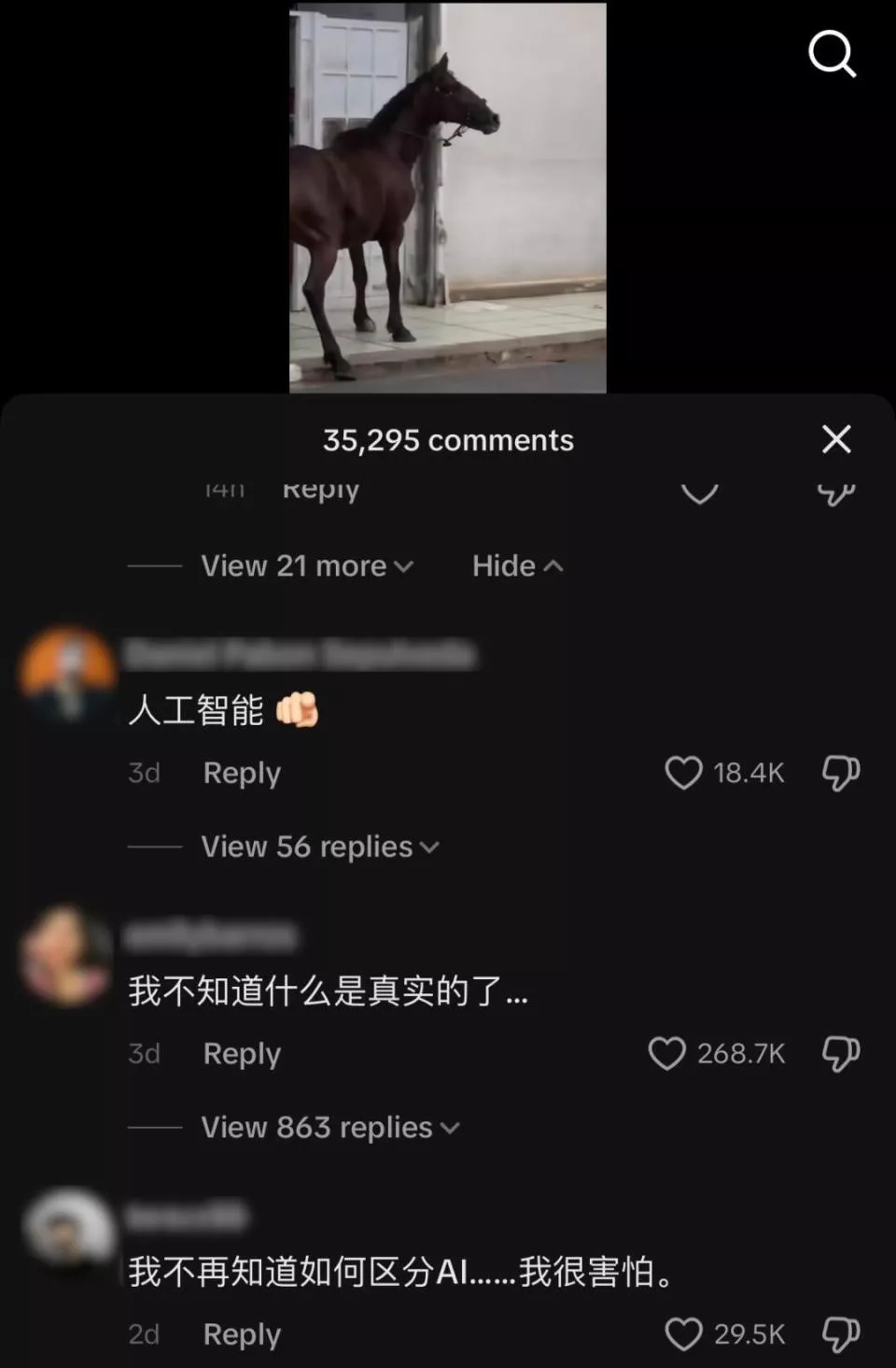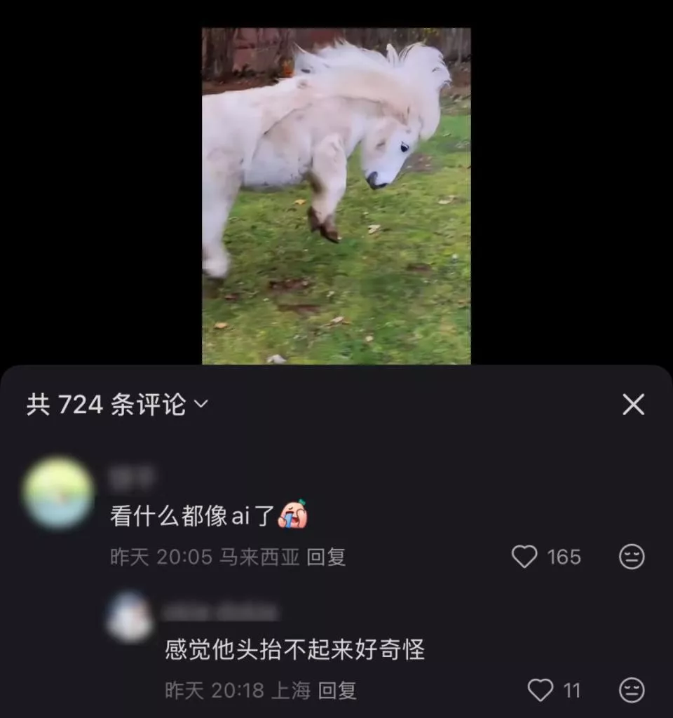 直到我看到平台那一条“疑似 AI 创作”的提示,以及评论区那句“我已经不能第一时间分辨出 AI 视频”。