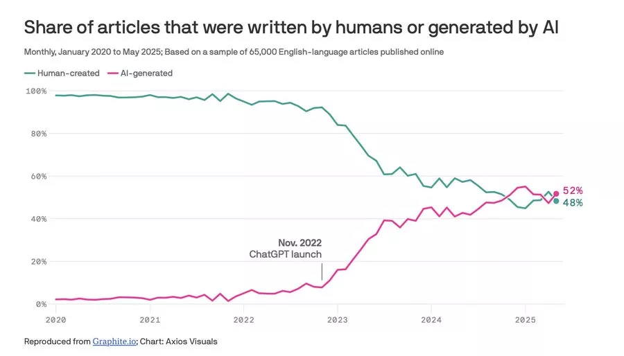牛津大学研究显示,互联网中AI生成内容已过半。(图/《More Articles Are Now Created by AI