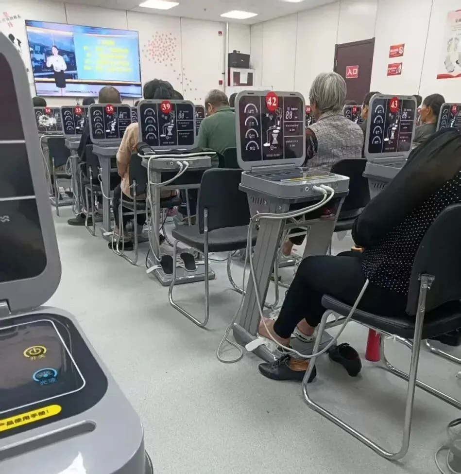 ▲理疗店里的老人边做理疗边学习养生知识。受访者供图