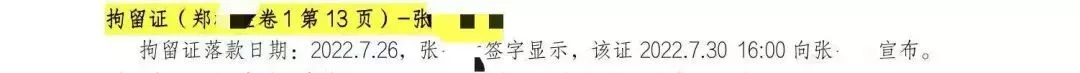 值得注意的是,7月30日这份“背诵”的笔录,在案卷里为张怡第一份笔录,此前她在龙洞派出所录的3份笔录均不见踪影。案卷显示,张怡于7月30日到案,当天16时收到刑事拘留证。