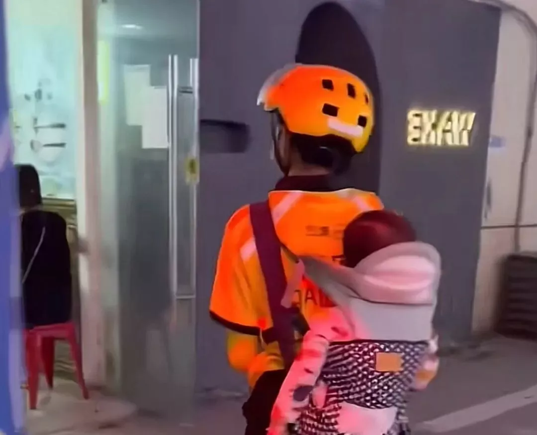 2024年春天,山东济南的妈妈任雪敏,也开始带着一岁半的儿子福福送外卖,起初,她被各种担忧裹挟——尤其是孩子的安全。在没有电梯的老旧居民楼,把孩子独自留在楼下,万一出了意外、甚至被人带走怎么办?她也试过用腰凳把孩子固定在身前,可自己个子小,腰也受不了长时间负重。