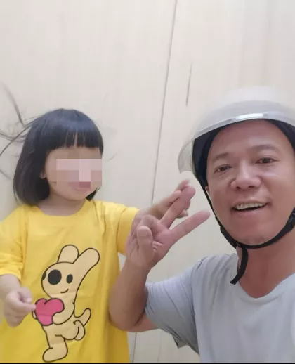 依依一岁多时,个子长高了,腿在婴儿提篮里伸不直了。陈平就给她换上了儿童座椅;再到去年,又升级成更安全、防雨防晒的款式。依依和他长得像,很健康,脸色红润,头发茂密。不过陈平37岁看起来“显老”,