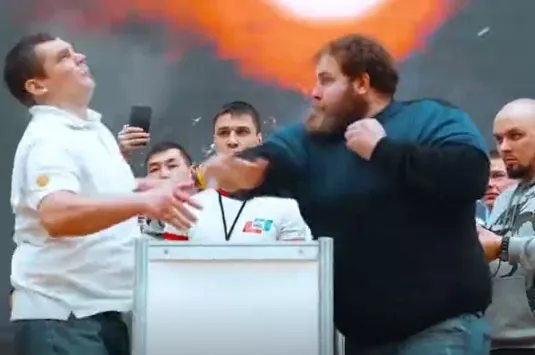 比如瓦西里·卡莫茨基,这位曾在俄罗斯扇耳光大赛创下统治级战绩的选手,是西伯利亚土生土长的农夫,没有任何专业训练记录。因为热爱俄罗斯饺子,他给自己取了个绰号“饺子哥”。他曾在比赛中一巴掌扇晕对手,也拍摄过一巴掌扇爆西瓜的视频,通过扇耳光大赛成为了著名网红。