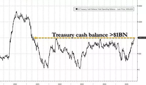 美国财政部下周将拍卖1250亿美元国债,加上约400亿美元公司债,在假期缩短的交易周内集中发行,对市场流动性构成严峻考验。为应对政府停摆,财政部囤积现金超7000亿美元,导致银行储备金降至2021年来最低,当前流动性环境已十分脆弱。