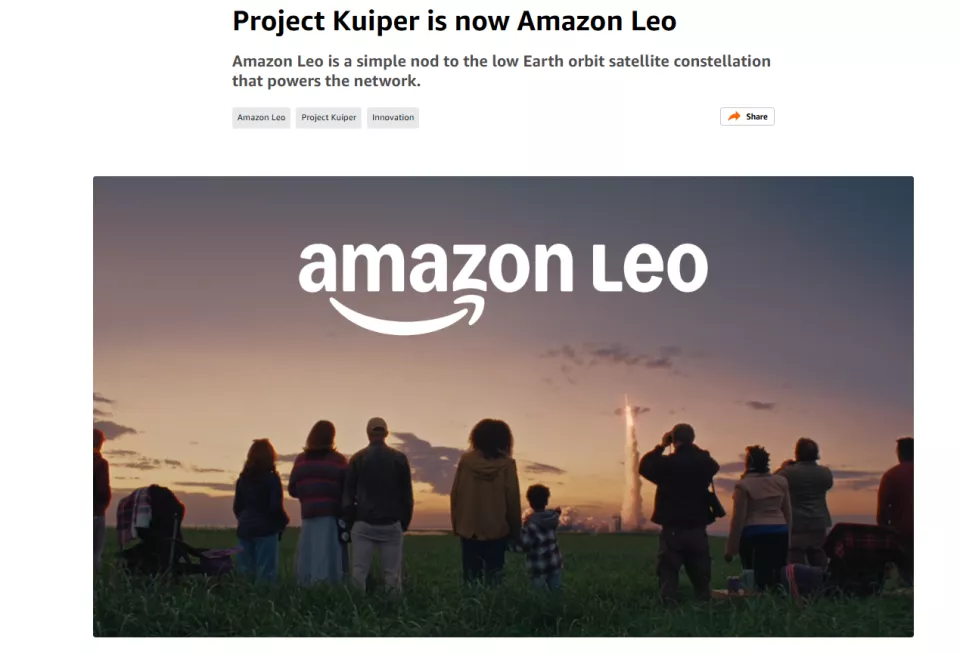 而创业7年之久后,亚马逊也在本周想起来要给卫星互联网业务起个名字。