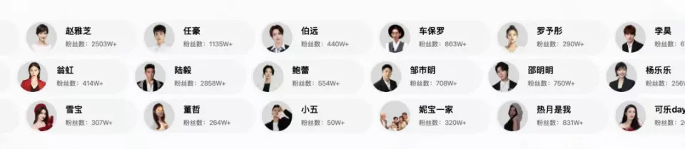 部分遥望科技签约明星及达人。图/截自遥望科技官网