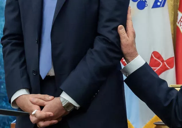 路透社则提到,他们展现出友好的肢体语言。特朗普不止一次与马姆达尼握手,并轻轻拍了拍他的手,显然很亲昵。特朗普还时不时地触摸或轻轻捶打马姆达尼的手臂,“就像个父亲一样”。