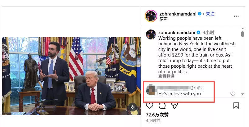 当地时间周五(11月21日)下午,正迎接周末的美国民众从电视、社交媒体看到震撼一幕:昔日死敌——美国总统特朗普和纽约当选市长马姆达尼,竟公开“你侬我侬”。