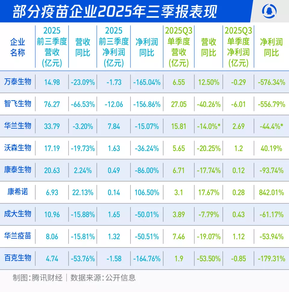 2025年前三季度,智飞生物实现营收76.27亿元,同比大幅下滑66.53%;净利润亏损12.06亿元,同比下降156.86%。仅第三季度单季,亏损额即达6.01亿元。