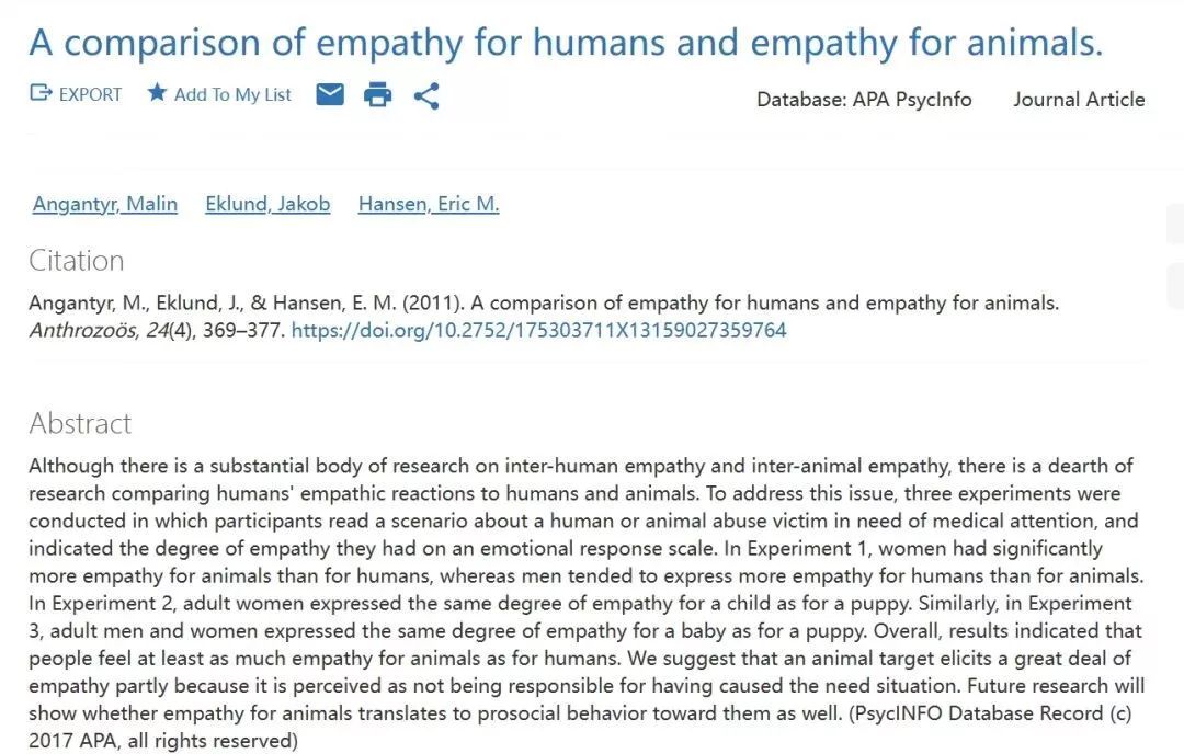 上述Malin Angantyr和Eric M. Hansen的研究论文,A comparison of empathy for