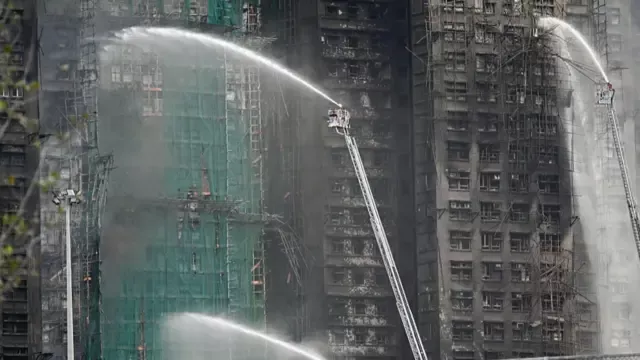 大埔区区议员梅少峰告诉BBC中文,涉事的宏福苑共有8座,全部都正在进行大维修,而当中有7座均受到大火波及,外墙棚架均受到严重焚毁,“最先起火的那一座楼,透过窗户也看到里面亦都有起火。”