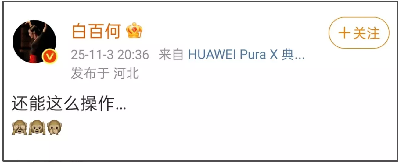 11月3日晚,女演员白百何突然发微博,称:“还能这么操作…”疑似表达不满。