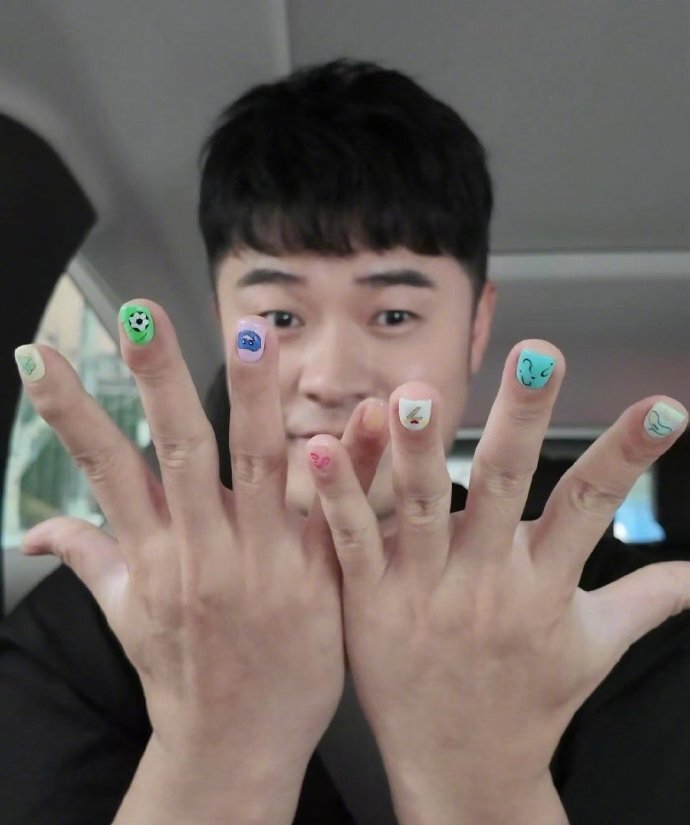 有时候看到他满手花花绿绿的指甲,还以为是女儿给他染的呢。没想到人家是专门找设计师定制的美甲。
