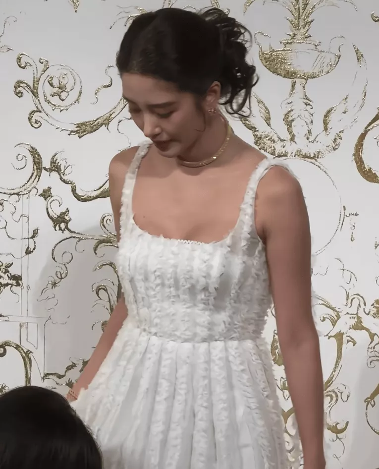 只见杨采钰穿着一条白色绒毛裙子出场,虽然裙子是大牌,但一点也不适合杨采钰,显得她又黑又臃肿,尤其是腰腹位置,肉眼可见十分厚重。