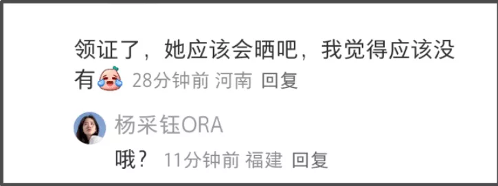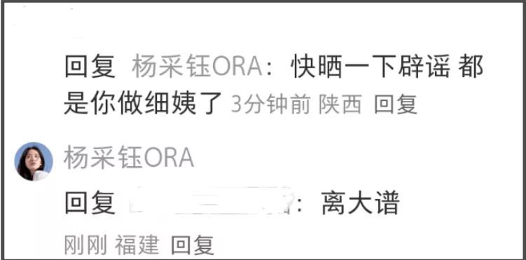 说杨采钰低调,是指她从不透露豪门内部情况,不晒结婚证、不办婚礼,以至于被质疑未婚先孕没领证给富二代做“细姨”;
