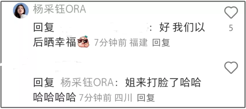 说杨采钰高调,是指她遭到质疑后火速曝光了老公身份,一边回怼网友,一边拉着男方社媒秀恩爱。