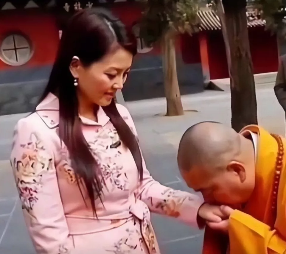 早年她也是受到电视台委派,到少林寺给释永信做采访。