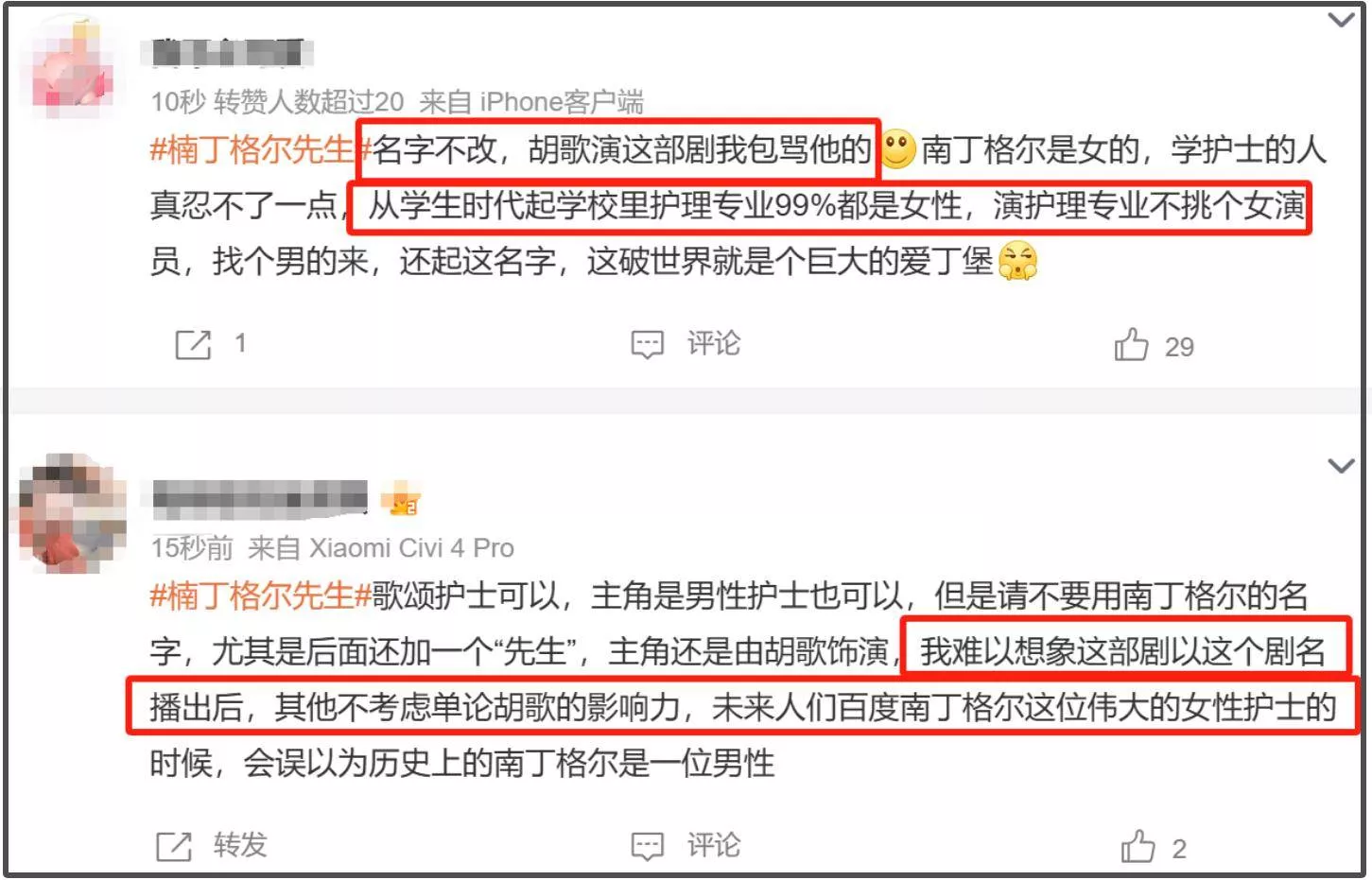 胡歌在二封白玉兰视帝之后,终于官宣了新剧信息,结果剧名直接引发巨大争议,名为《楠丁格尔先生》。