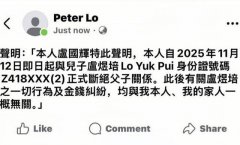突发!据港媒最新报道,香港知名女星、前港姐冠军卢淑仪的父亲卢国辉在社交媒体上发文,宣布和自己的儿子卢煜培断绝父子关系,引发了外界不少关注和热议。 在文中,卢国辉未有...