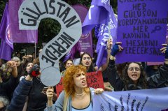 在「国际消除对女性暴力日」前夕,土耳其伊斯坦堡街头23日聚集大批示威者,高举标语并呼喊口号,抗议针对女性的暴力行为。(法新社) 在11月25日「国际消除对女性暴力日」前夕,...