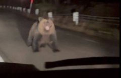 日有民众深夜开车时,在路上遇到大型棕熊,熊见状立刻朝车子冲过来。(图撷自X) 日本今年熊出没频繁,除了本州黑熊屡传伤人事件外,北海道棕熊也经常发生与人近距离接触事件...