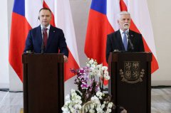 捷克总统帕维尔(右)今天接见波兰总统纳夫罗茨基(左),双方会后表示,两国在俄乌战争中立场相同,将俄罗斯视为欧洲安全的重大威胁。(欧新社) 捷克总统帕维尔今天在布拉格...