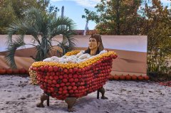 德国南瓜节以「女力」为主题,图为用南瓜打造的古埃及女王克丽奥佩脱拉(Cleopatra,通称埃及艳后)泡澡的奇特景象。(美联社) 德国柏林附近一座农场近日迎来年度盛事,第22届南...