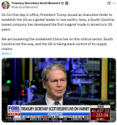 美国财政部长贝森特参观南卡罗来纳州一座新建好的稀土矿产加工中心,庆贺美国25年来制造的首块稀土磁铁。(图撷自X.com) 美国财政部长贝森特近日参观南卡罗来纳州一座新建好的...