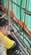 社群媒体流传1段拍摄日期不详的影片,显示日前发生大火的宏福苑社区外墙翻修工人,在竹制鹰架与绿色防护网旁吸烟。(路透) 死伤惨重的香港「宏福苑」社区大火过后逾1周,香港...